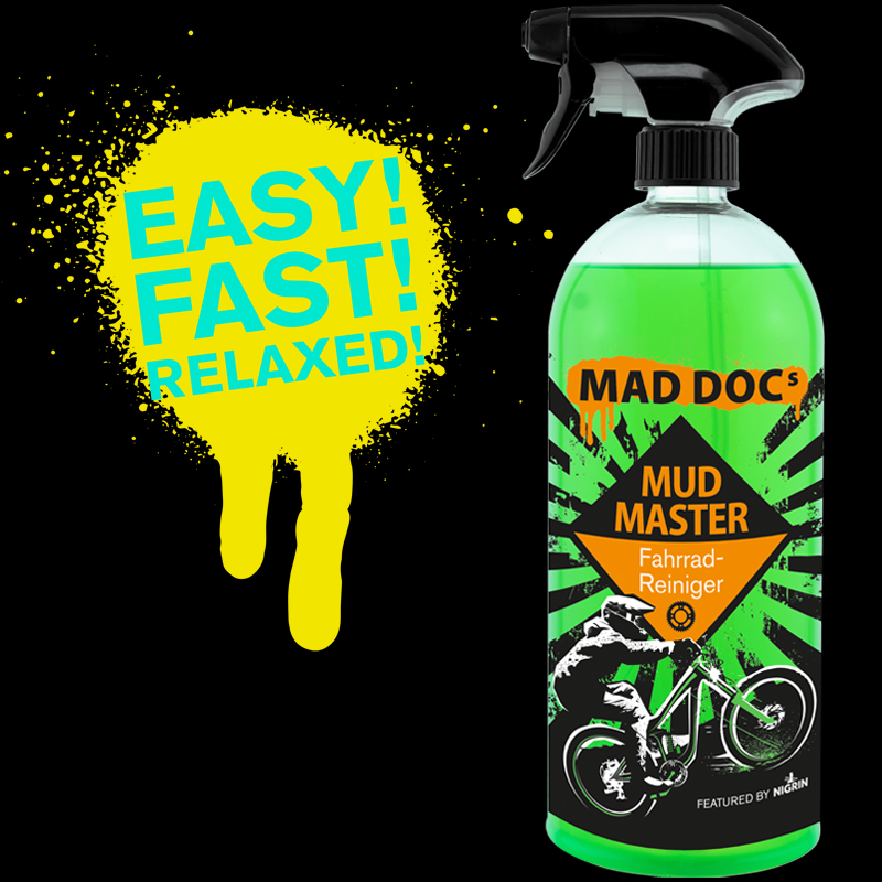 MAD DOCs MUD MASTER macht die Fahrrad-Reinigung simpel: EINSPRÜHEN – EINWIRKEN LASSEN – ABSPÜLEN – FERTIG!